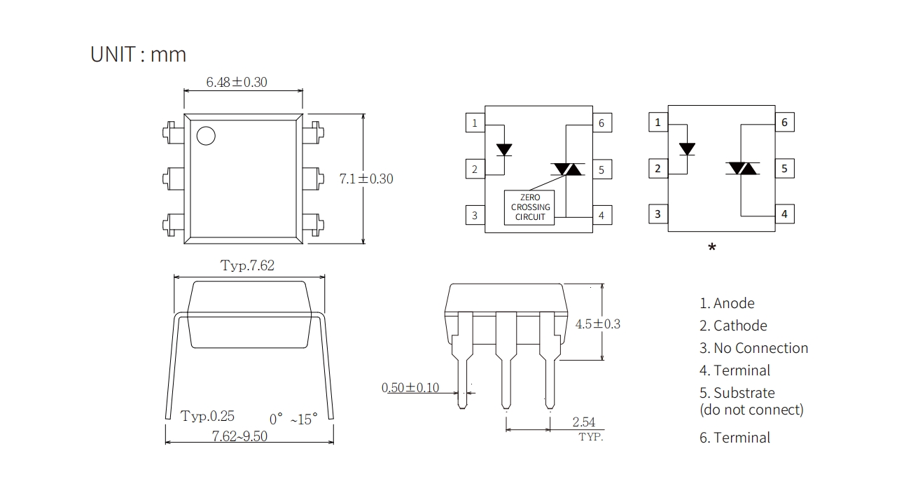 Product Package size(LxWxHmm) VF(V) VDRM(Max) (V) VTM(V) VINH(V) IT (rms)(mA) IFT(mA) Topr (Min) (degC) Topr (Max) (degC) Viso (Vrms)